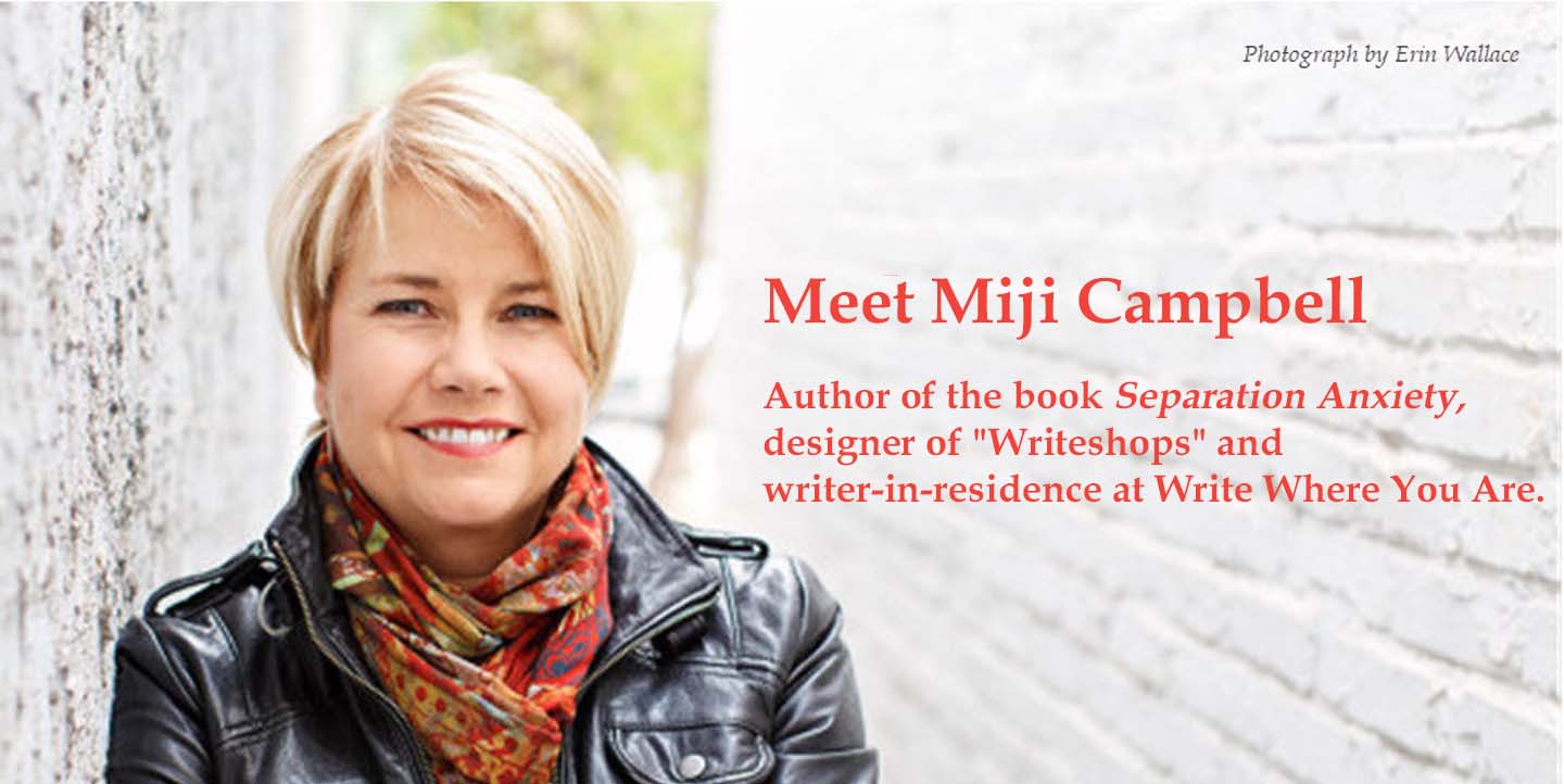 Write Where You Are is the virtual home of writer Miji Campbell, her book Separation Anxiety: A Coming of Middle Age Story, and Writeshops, her writing workshops that are more play than work.